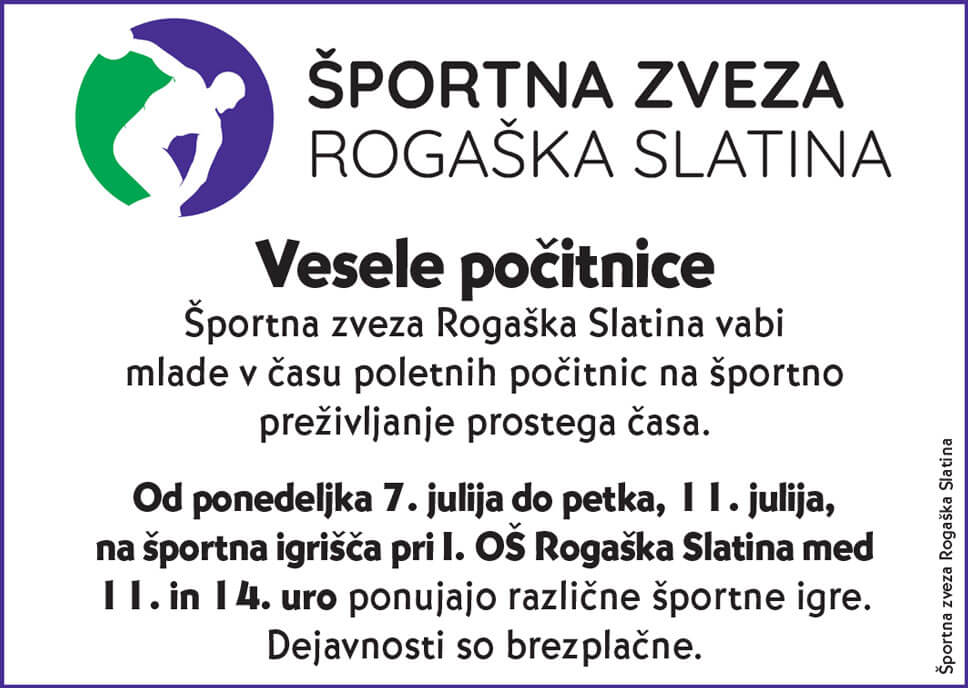 Športna zveza Rogaška Slatina vabi mlade v času poletnih počitnic na športno preživljanje prostega časa.